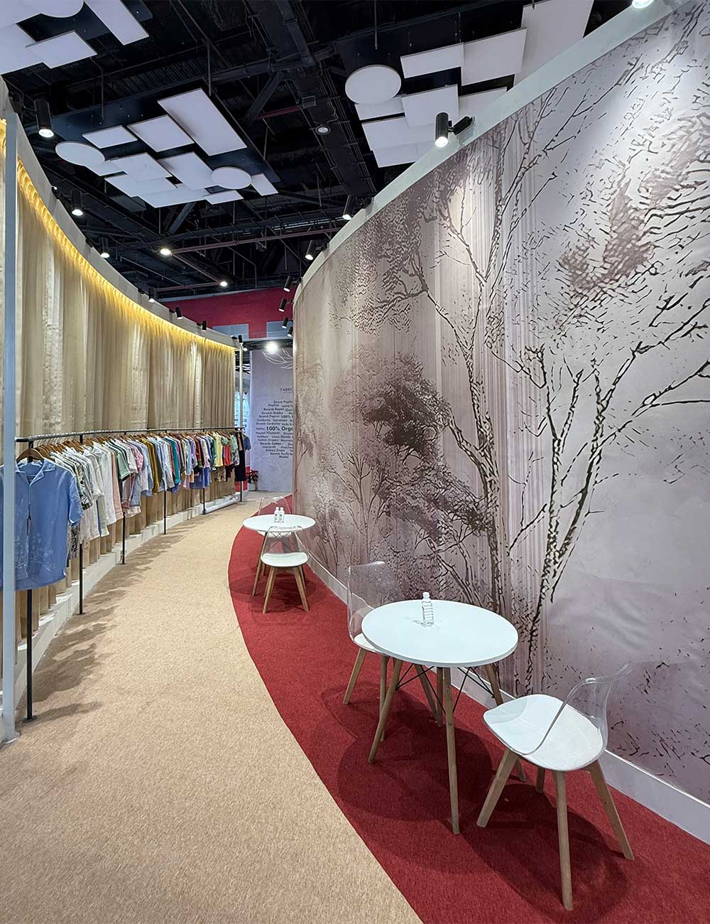 Each fold highlighted craftsmanship, each weave represented innovation, and every detail was intentionally designed. From threads to ideas, from looms to light, the space became a thoughtful canvas where fabric was not only showcased but experienced as a complete design story.